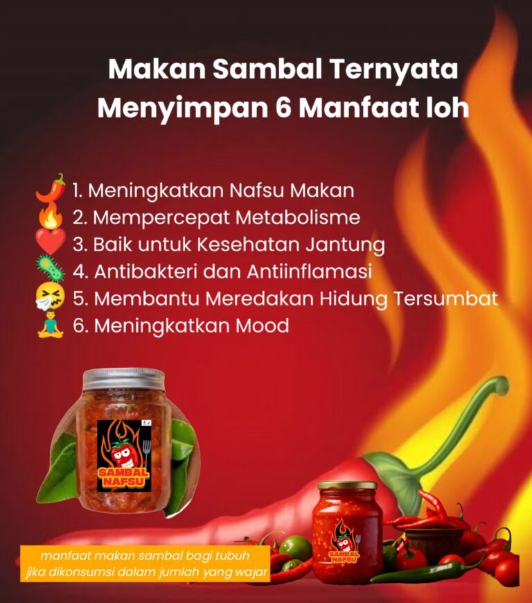 ⚠️ Catatan Penting: Konsumsi sambal secara berlebihan bisa menimbulkan iritasi lambung, diare, atau naiknya asam lambung. Jadi, konsumsi dengan bijak dan sesuai toleransi tubuh masing-masing.